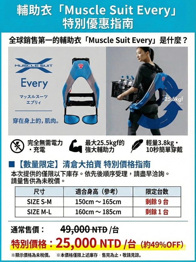 此次的季末特惠商品為廣受好評的外骨骼輔助動力服